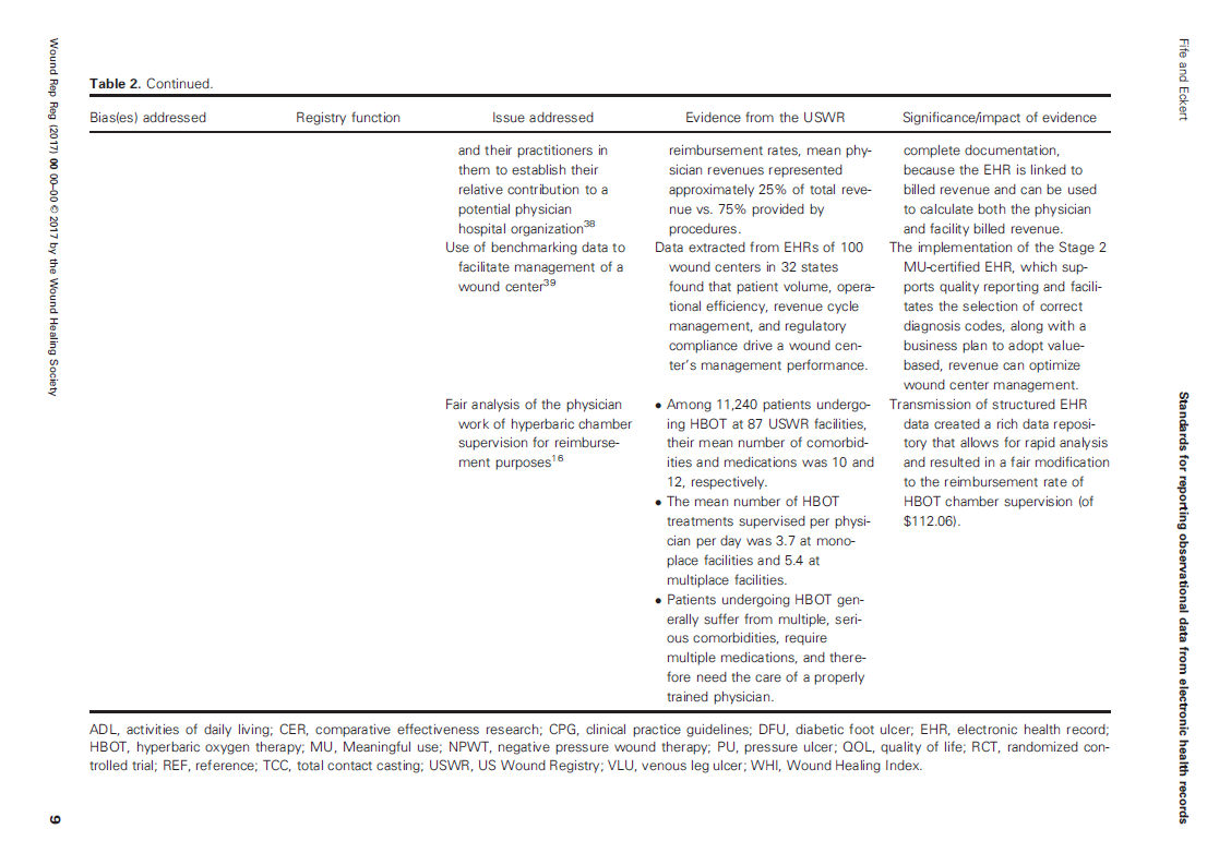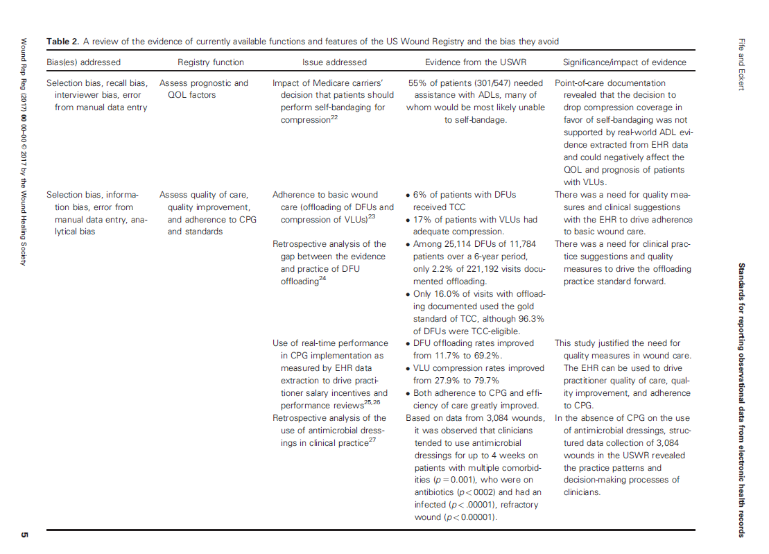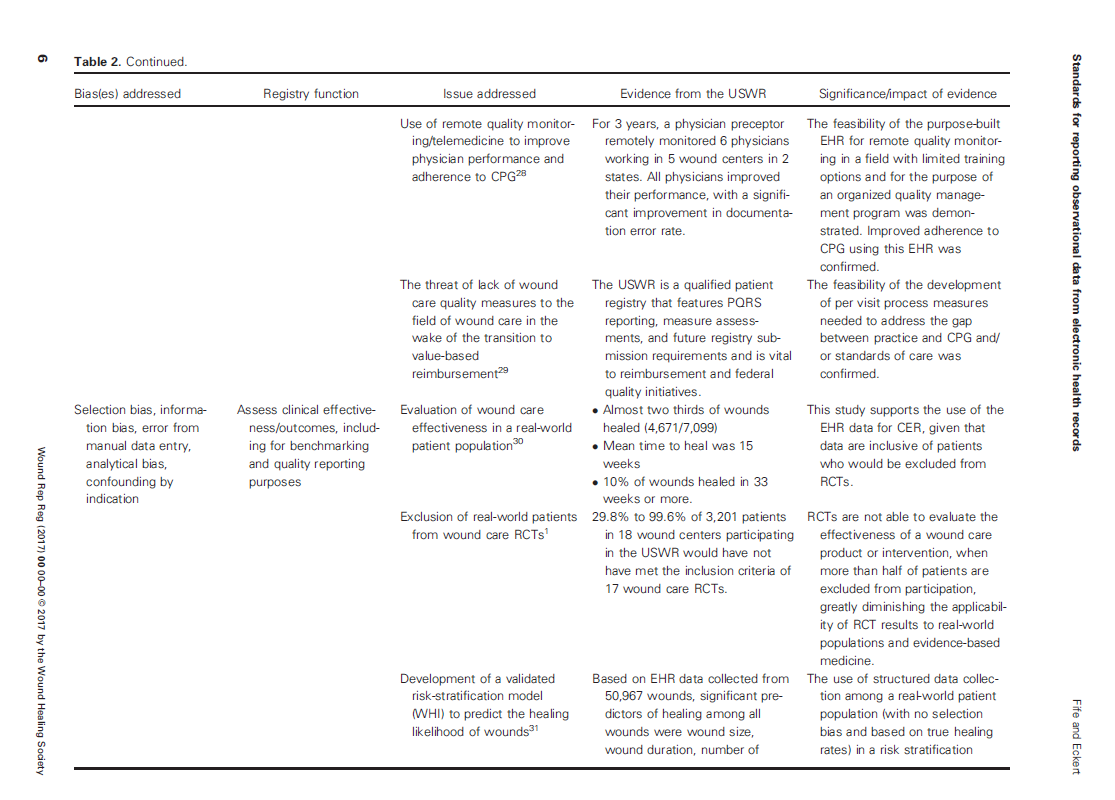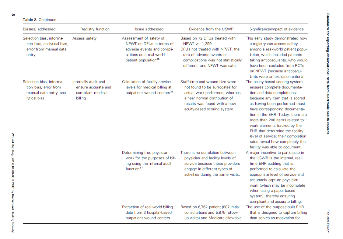 The various sources of bias and how the US Wound Registry handles them are listed in Table 2 which I have provided below:
